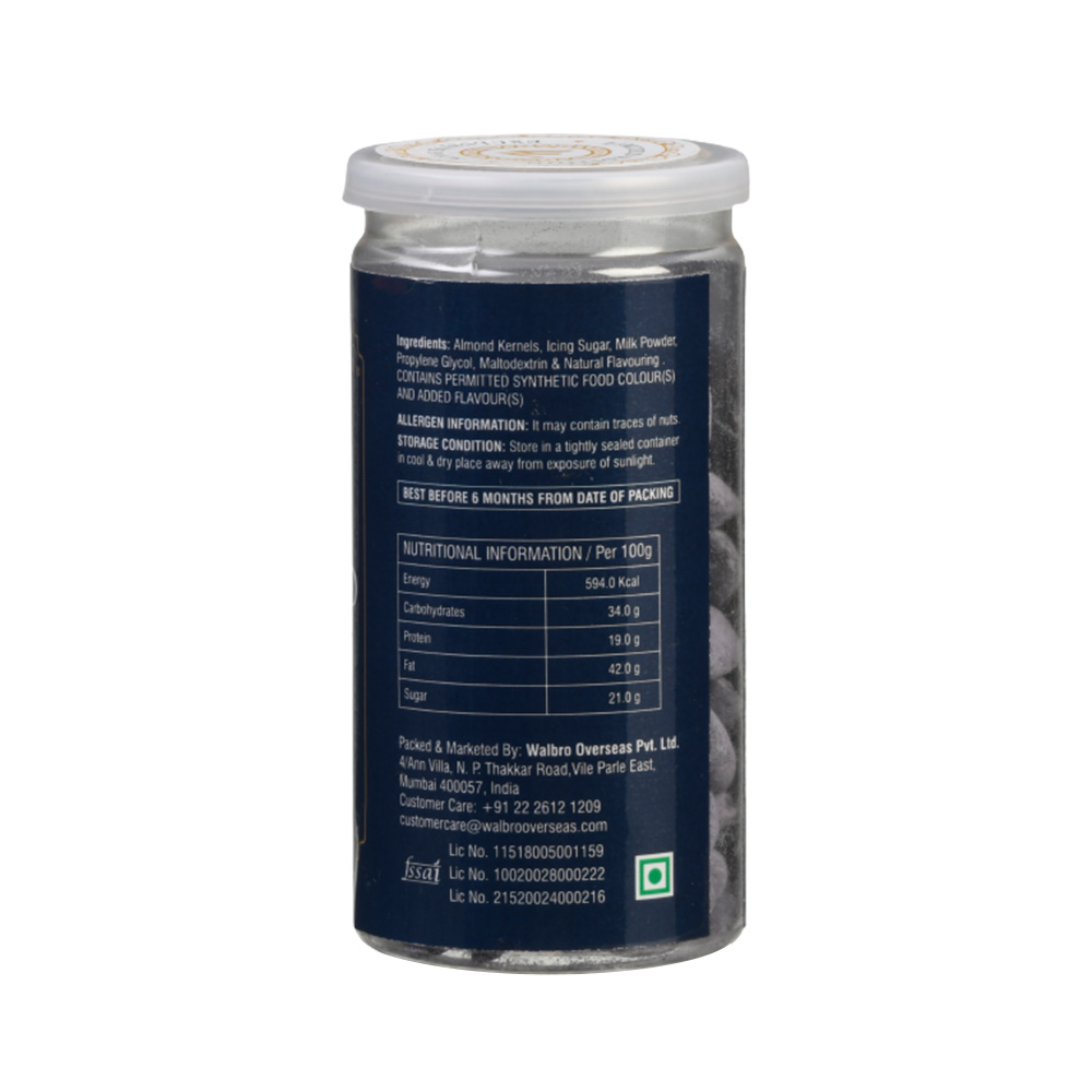 Almond Kernels, Icing Sugar, Milk Powder, Propylene Glycol, Maltodextrin & Natural Flavouring.