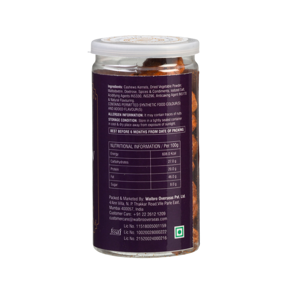 Cashews Kernels, Dried Vegetable Powder, Maltodextrin, Dextrose, Spices & Condiments, Iodized Salt, Acidifying Agents INS330, INS296, Anticaking Agent INS170 & Natural Flavouring. CONTAINS PERMITTED SYNTHETIC FOOD COLOUR(S) AND ADDED FLAVOUR(S)