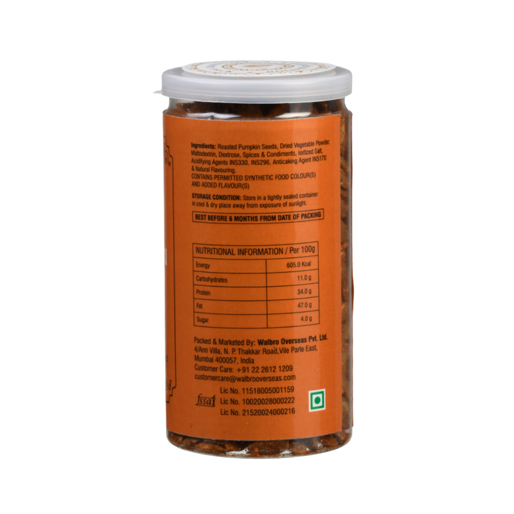 Roasted Pumpkin Seeds, Dried Vegetable Powder, Maltodextrin, Dextrose, Spices & Condiments, Iodized Salt, Acidifying Agents INS330, INS296, Anticaking Agent INS170 & Natural Flavouring. CONTAINS PERMITTED SYNTHETIC FOOD COLOUR(S) AND ADDED FLAVOUR(S)