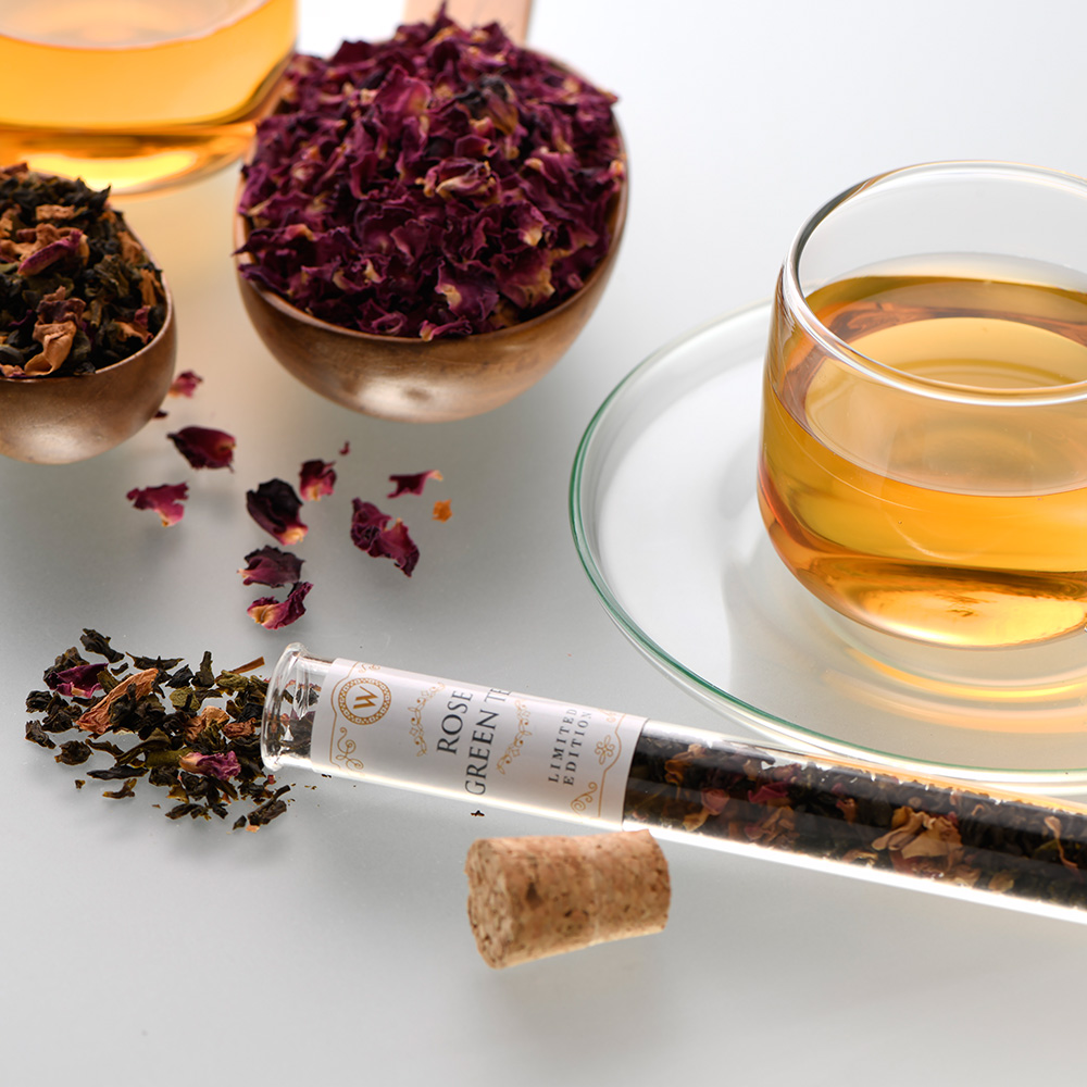 Our rose petals and organic green tea blend are all about beauty and scent.